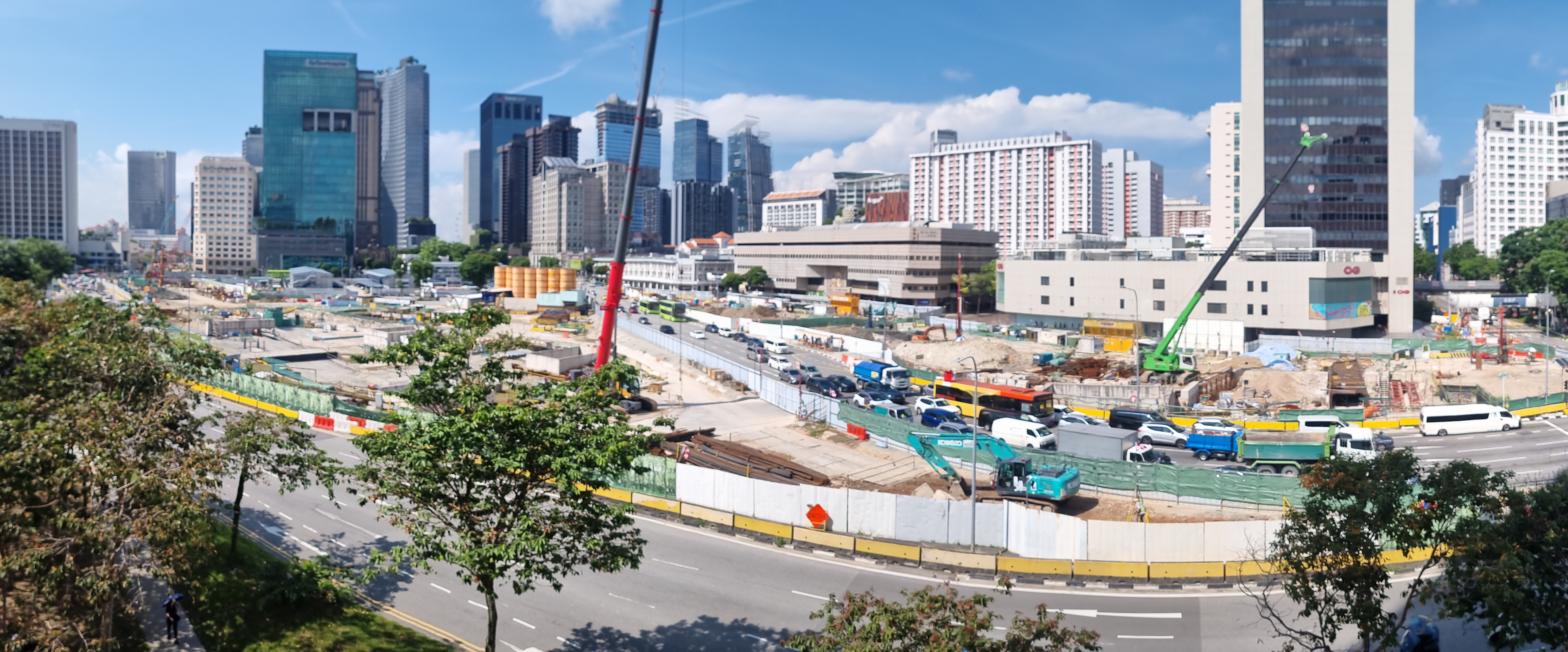 N102 is considered the most challenging section of the entire project. Since the site is located near three MRT subway lines currently in operation, high precision construction is required. In particular, a bidirectional six-lane road has to be built a mere 30 cm above the upper part of the North East MRT Line (NEL). In addition, slurry walls must be created underneath Ellison Building, a protected historic landmark built almost 100 years ago, so the tunneling work must be accompanied by the reinforcement and repair work for the building. Since the site is located in the downtown area, the project requires smooth handling of complaints from people nearby and more than 50 traffic diversions as well as careful construction and safety management.