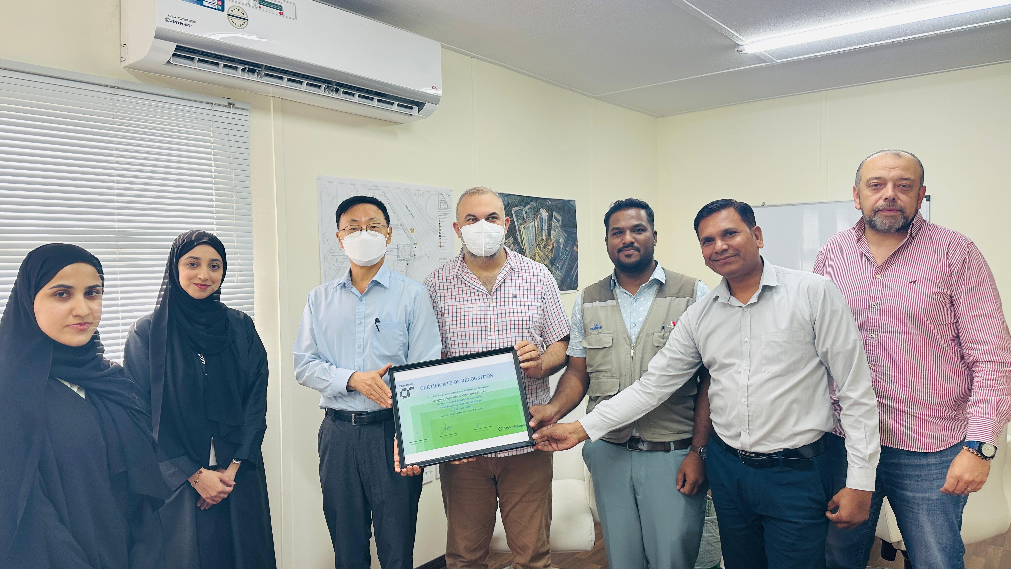 On September 23, the DUKIA-2 project site in Dubai, operated by Ssangyong Engineering & Construction (E&C), received an official commendation for achieving 15 million man-hours with zero Lost Time Injury (LTI).
